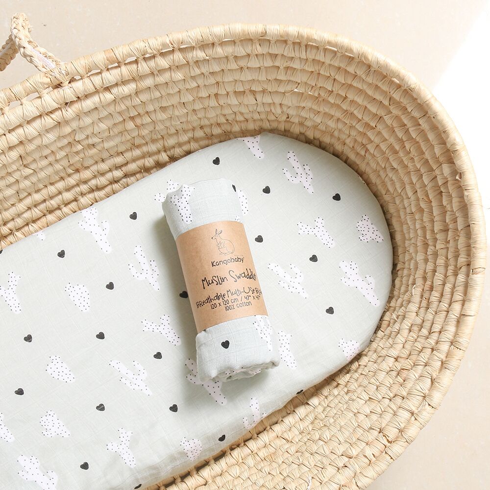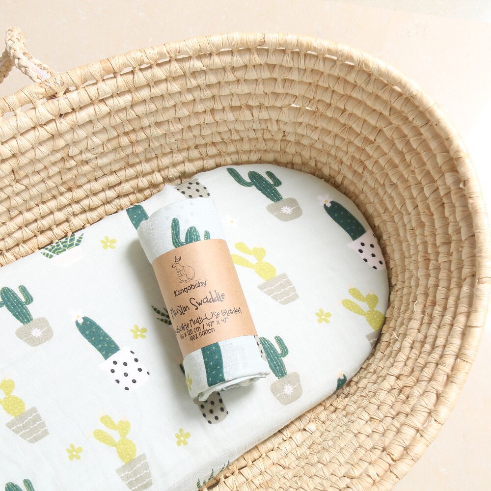 100% Organic Cotton Muslin Swaddle Receiving Blanket 120x120cm