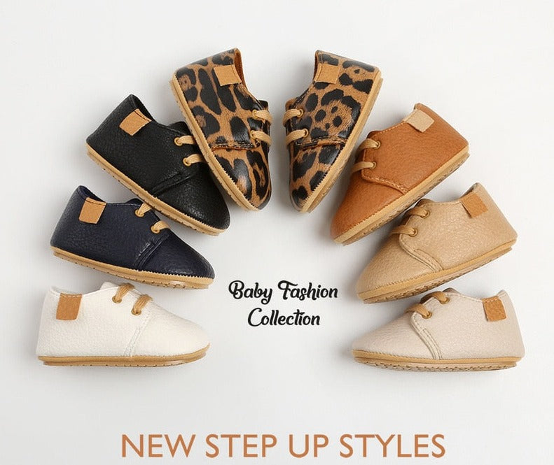 Rubber Non-Slip Soft Sole Leather Baby Shoes - Flat, Breathable, Light Weight